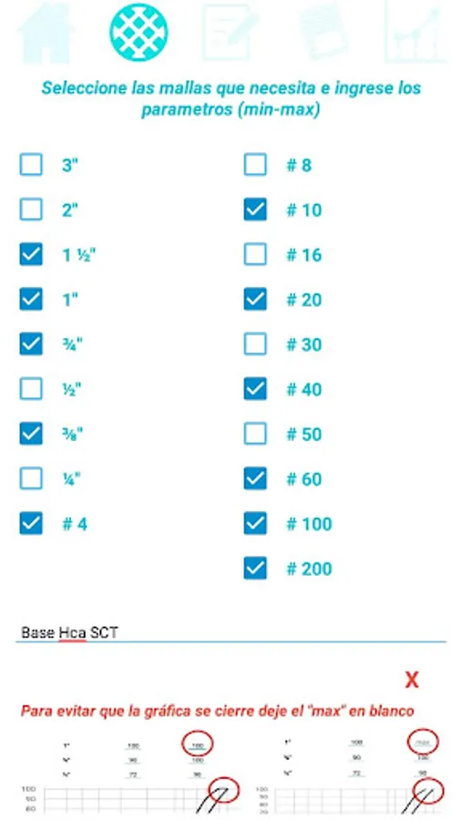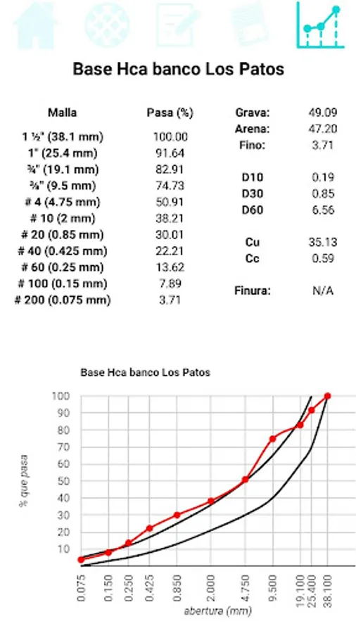 This app lets you calculate the percentages retained, accumulated and those that passes each sieve.