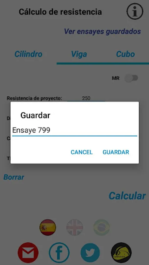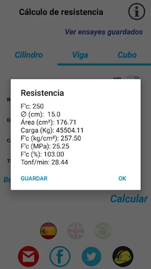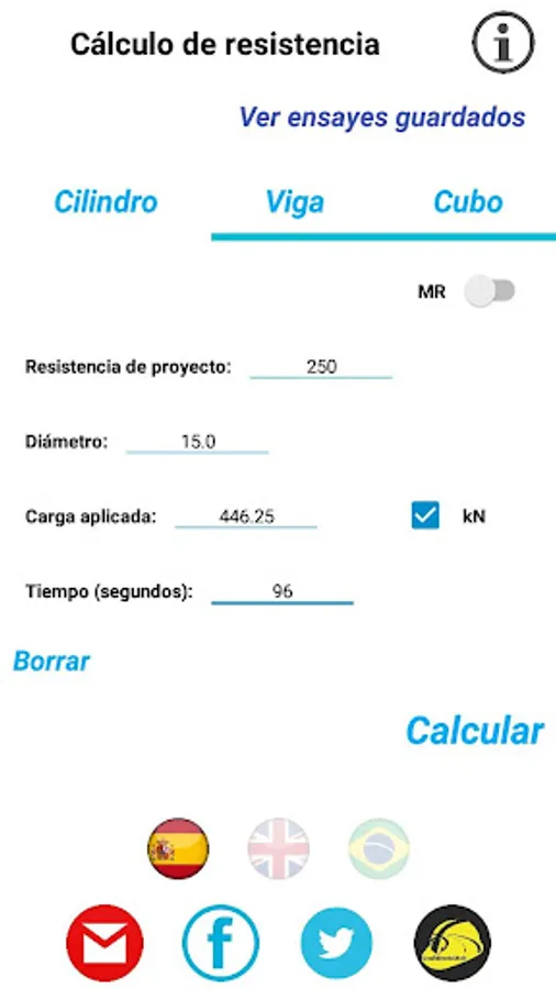The beams are calculated in the same way regardless of whether they are 50 or 60 cm, this application calculates the resistance considering a fracture within the middle third, a width × height of 15 × 15 and a base with supports to 45 cm, due to that these are the most common.