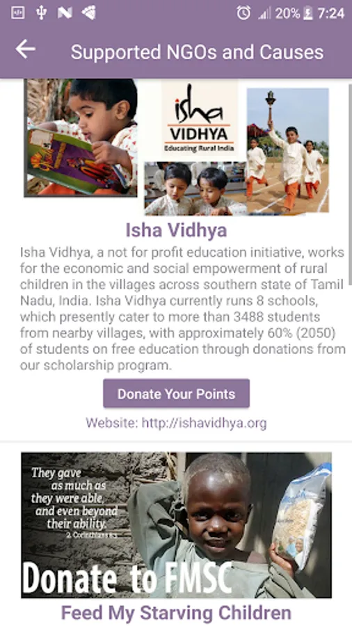 You can get points while doing meditations and listening to sessions, which you can be used for translating into financial help to a NGO or a Noble cause of your choice.