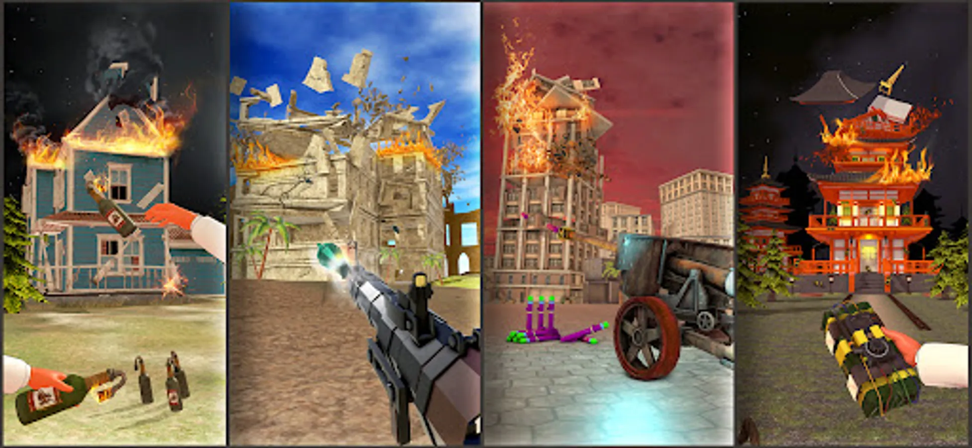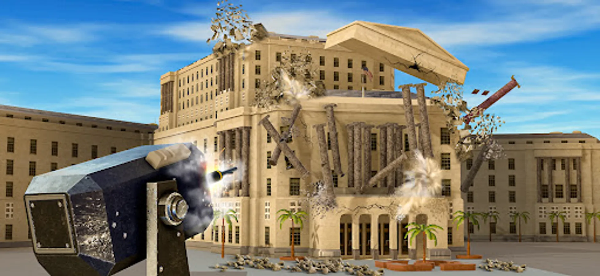 With tear buildings down demolition game, you have the power to destroy & teardown entire city, smash down skyscrapers and wreck landmarks with just the touch of a button. Become the ultimate demolition master and tear down everything in sight using a variety of realistic physics-based weapons and tools, including guns, rocket, bombs, dynamites, wrecking ball cranes and hammers.