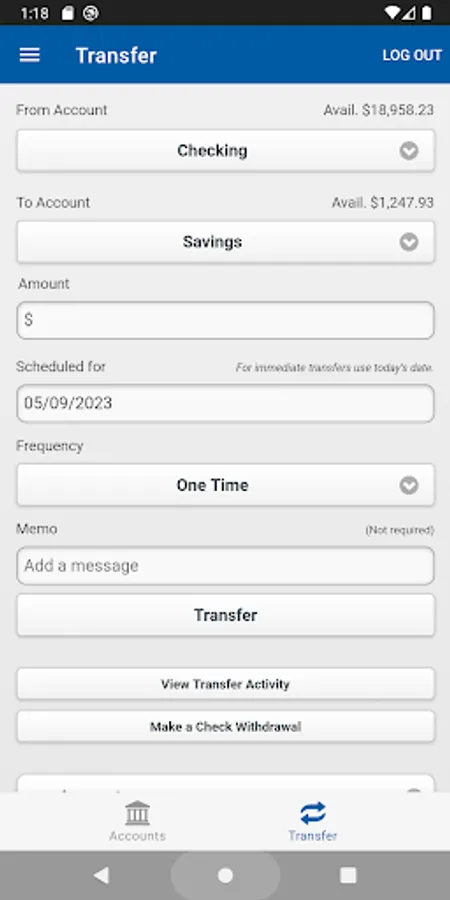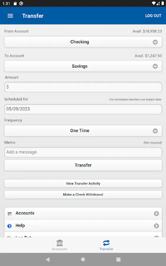 • Transfer funds instantly to other credit union accounts or loans