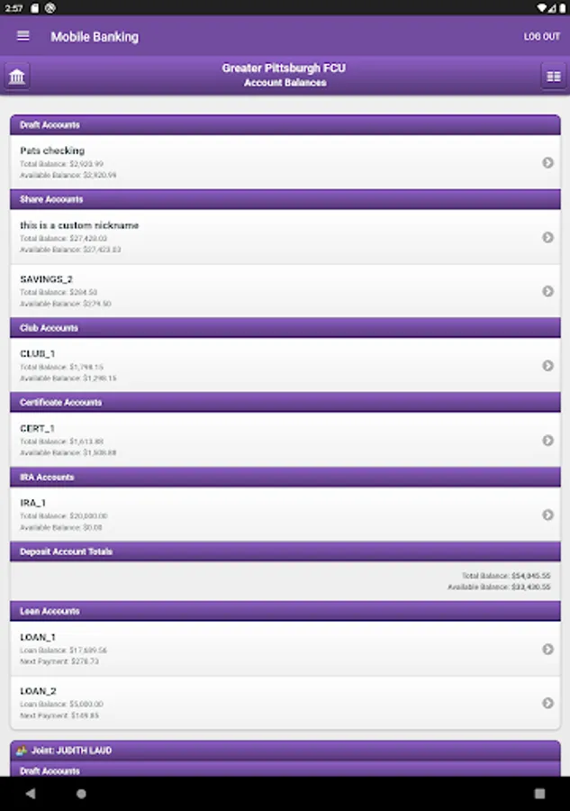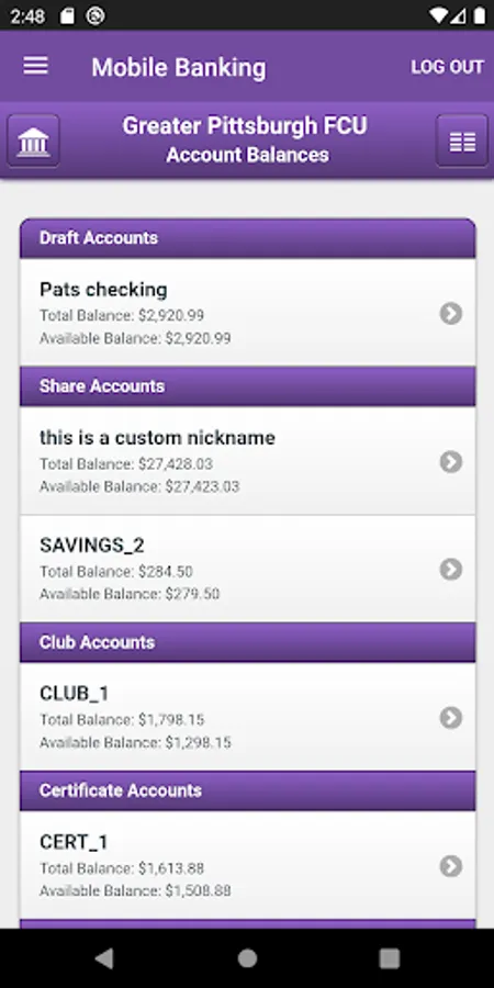 • Transfer funds instantly to other credit union accounts or loans