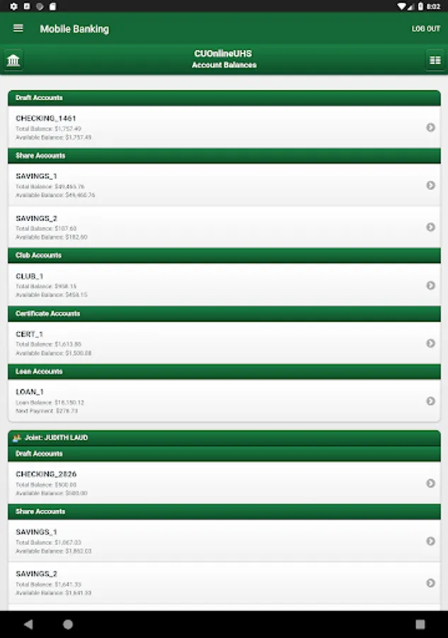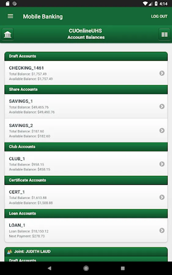 • Transfer funds instantly to other credit union accounts or loans