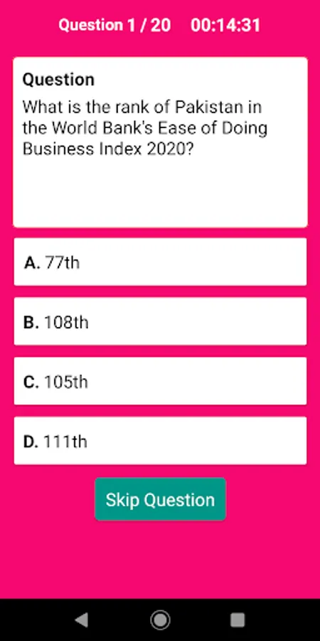 π CSS MCQs provides number of subjects to take quiz and get result instantly. Select any subject and you have 15 minutes to solve quiz. There are four options select one of them it will quickly prompt and show whether the result is correct or incorrect.