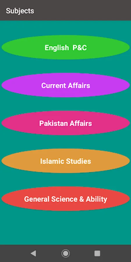Select subject in which you want to take quiz.
