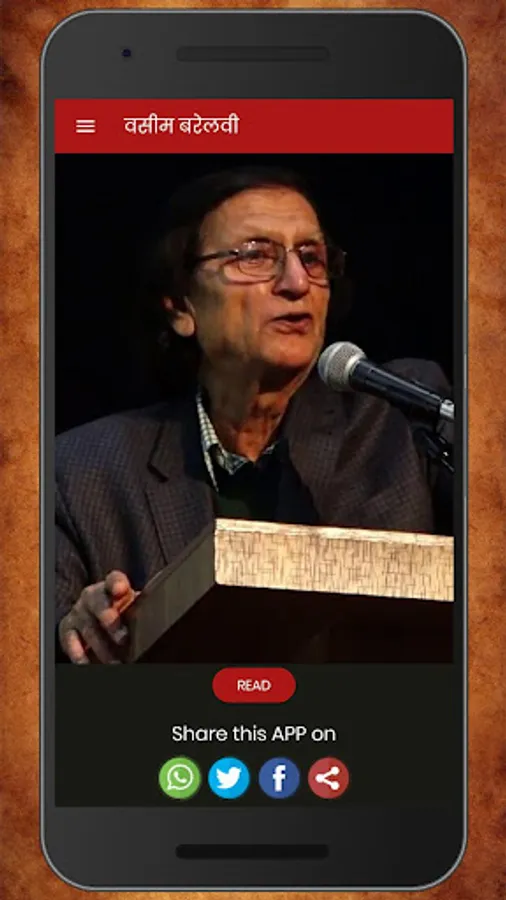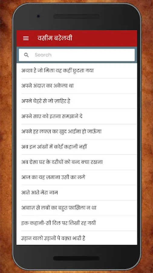 Wasim Barelvi or wasim barelvi is the pen name of Zahid Hussain, born 8 February 1940 in Bareilly, Uttar Pradesh, an eminent Indian Urdu poet. His ghazals, many sung by Jagjit Singh, are very popular. He has been awarded with the "Firaq Gorakhpuri International Award", the Kalidas gold medal (by the Haryana government, in recognition for his services in the field of Urdu poetry); the Begum Akhtar Kala Dharmi award; and the Naseem-e-Urdu award. Barelvi is Vice Chairman of the National Council for Promotion of Urdu Language(NCPUL). He has also performed at Culrav 2012 (the cultural event of NIT Allahabad).