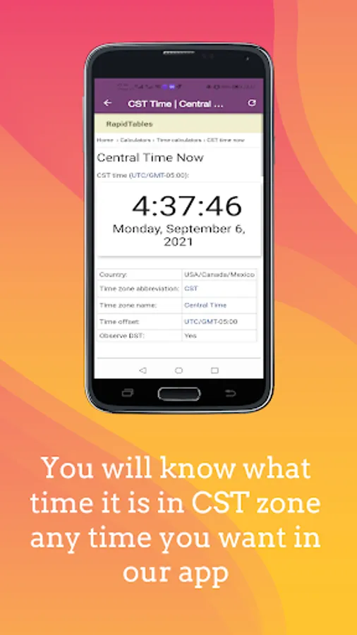 Know the time now in CST zone and in all states with CST time clock ( Central Standard Time) app