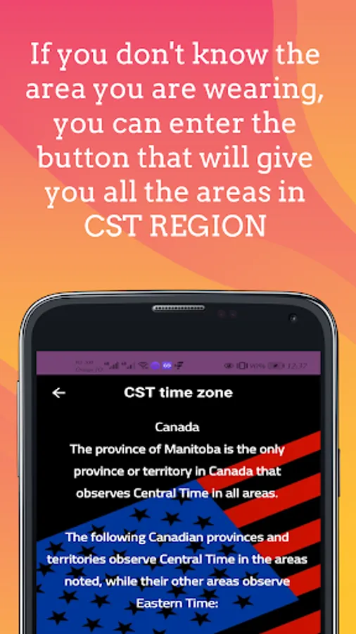 And you can know the most areas of CST zone in the CST time clock app today and share it with your friends and your family ans save it on your device
