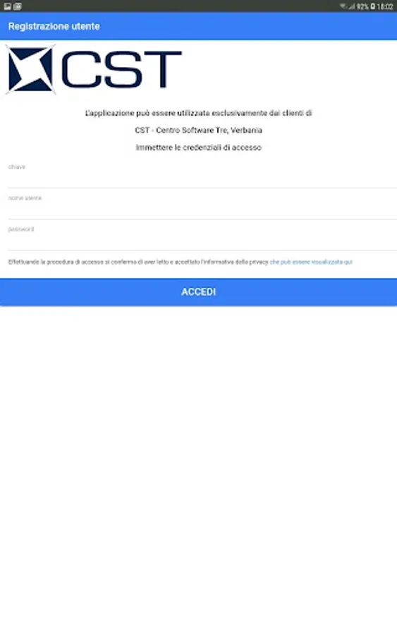 The application can only be used by customers of CST - Centro Software Tre, Verbania