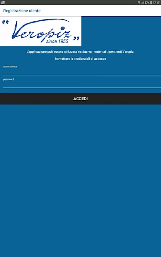 The application can only be used by employees and operators of VEROPIZ S.u.r.l.