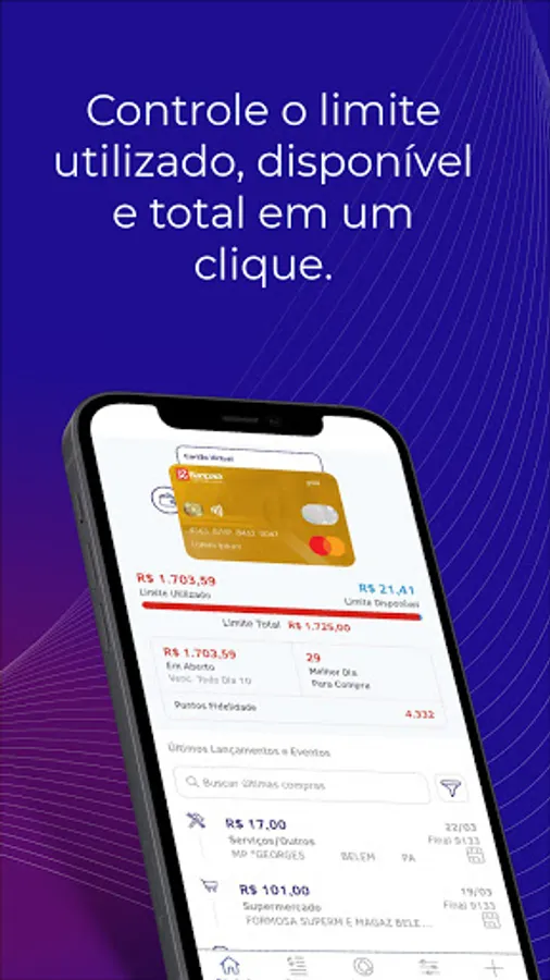 ● Used, Available and Total Limit: See information about the limit of purchases and withdrawals.
