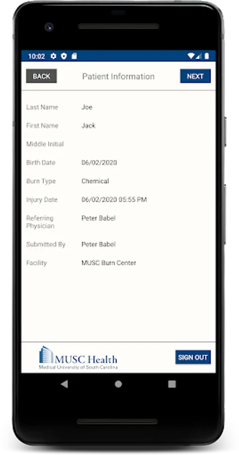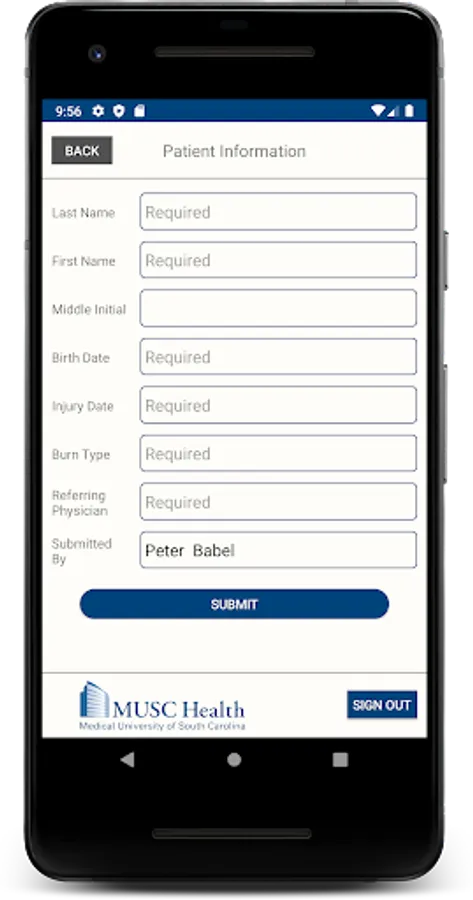 MUSC Burn Consult is an application designed to help emergency room physicians contact their affiliated burn center experts to assess a burn wound and collaboratively determine the course of treatment. MUSC Burn Consult is designed to help with timely triage and treatment of a burn patient.