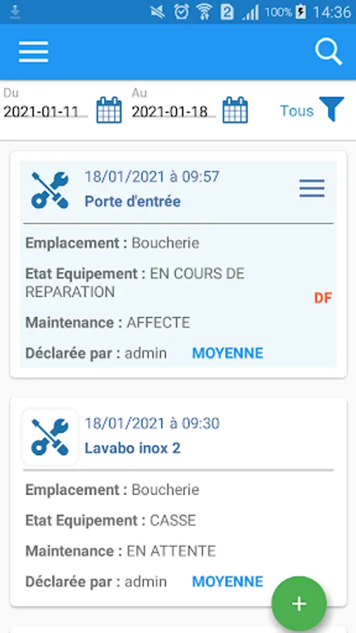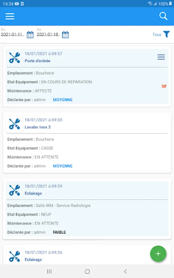 by entering declarations of material failures, reading of energy meters and conditional measurements of materials.