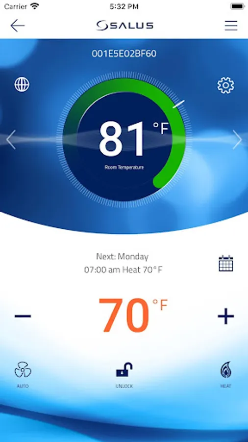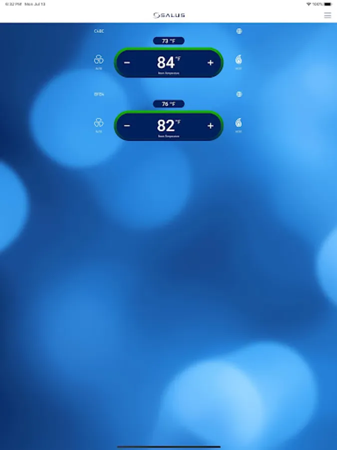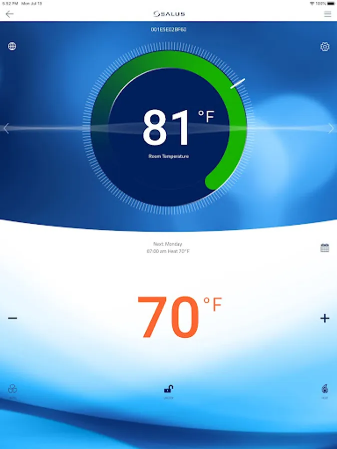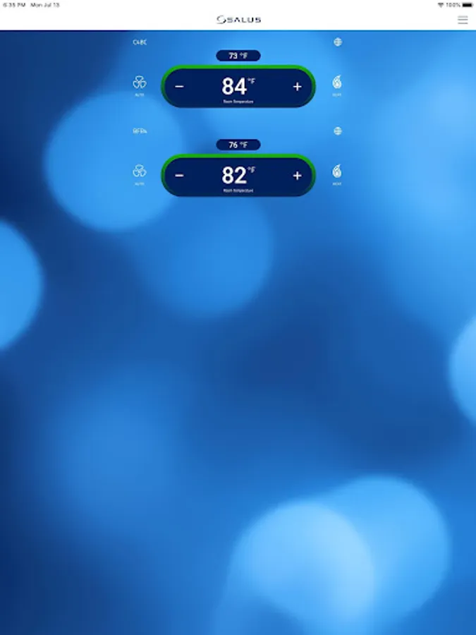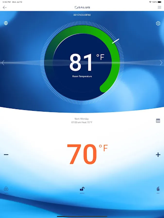 The SALUS SOLO app provides a clean interface with intuitive navigation to allow users to monitor and control the HVAC systems from any Android mobile device.  The App provides a simple and efficient view of the run-time status of multiple SOLO thermostats installed on you home WIFI network. One touch allows you to drill-down into any thermostat to view the operational status of your HVAC equipment, control the set-point temperature, heating and cooling mode and fan state and schedules. A detailed settings menu allows users to access, and alter, many of the system parameters right from your mobile device. A convenient Bluetooth interface provides a fast and efficient means of connecting the thermostat to the local Wi-Fi network.
