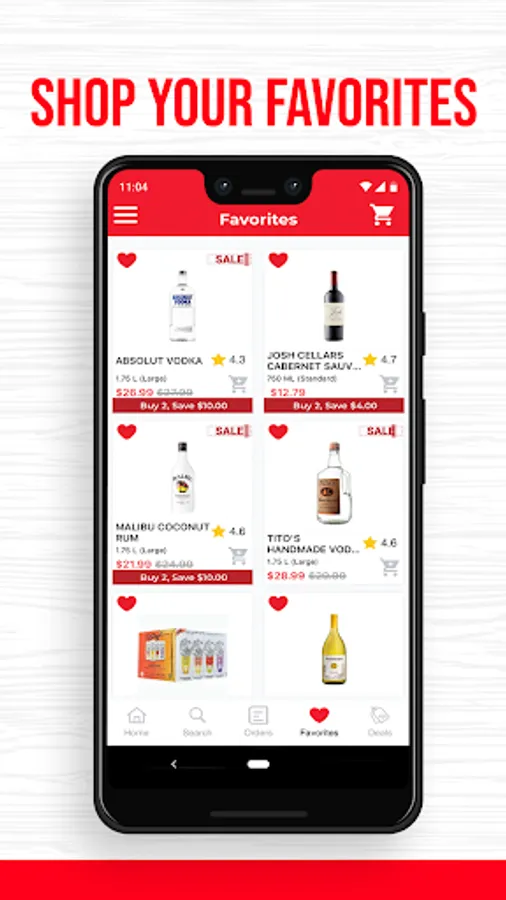 Tap the heart to save your favorite items and to save time when placing your order. For faster checkout, save your payment information and reorder from your order history.