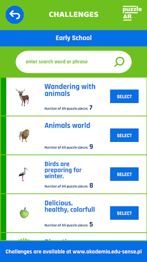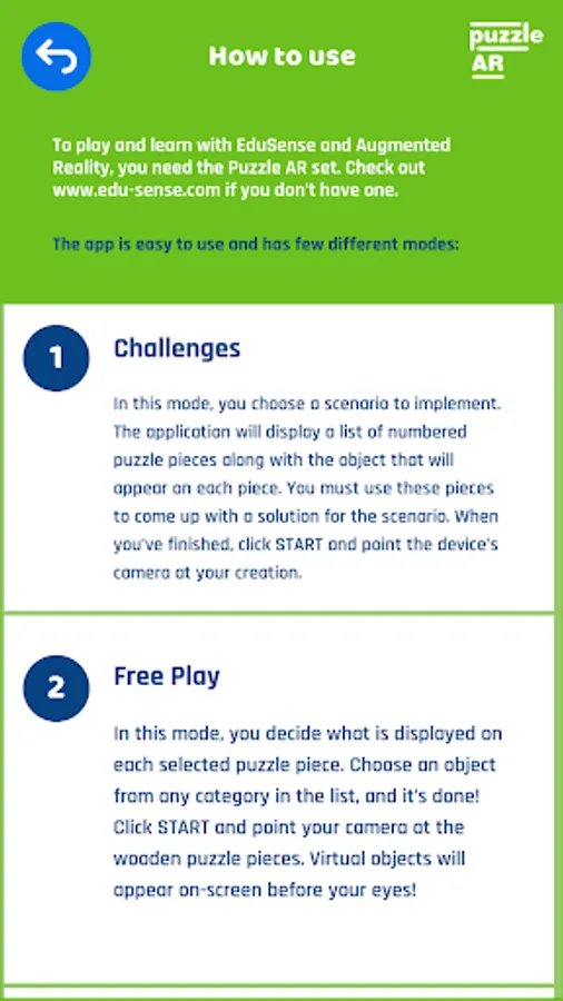 The application requires the use of AR Puzzles markers available at www.edu-sense.com
