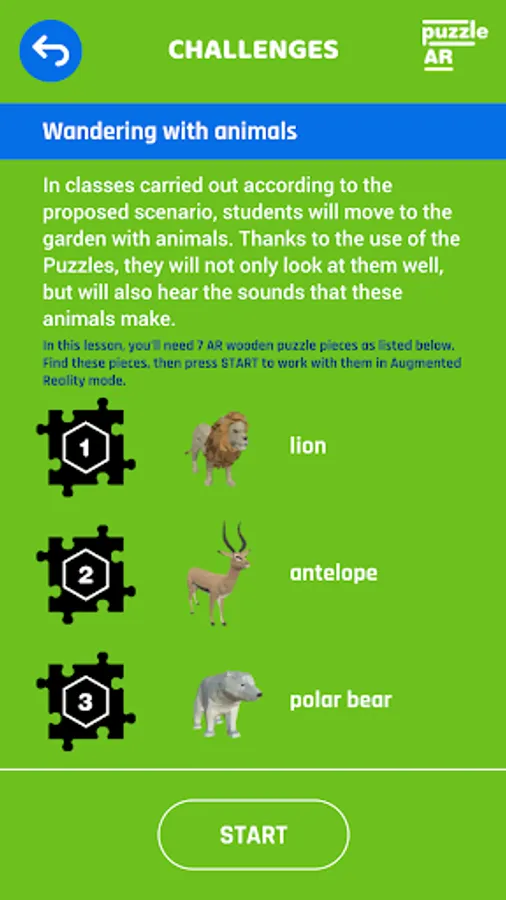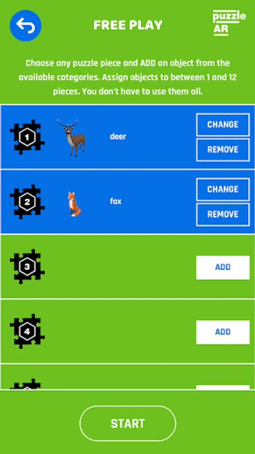 3) Click Start and point the device camera at the AR Puzzel with selected number