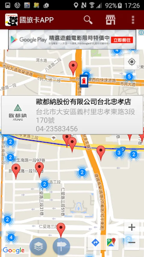 8. 提供透過Google工具導航至該特約特約商店之功能連結,以方便規劃前往方式