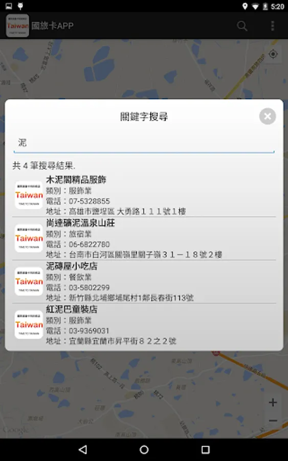 1. 提供國民旅遊卡特約商店之地圖資訊查詢功能
