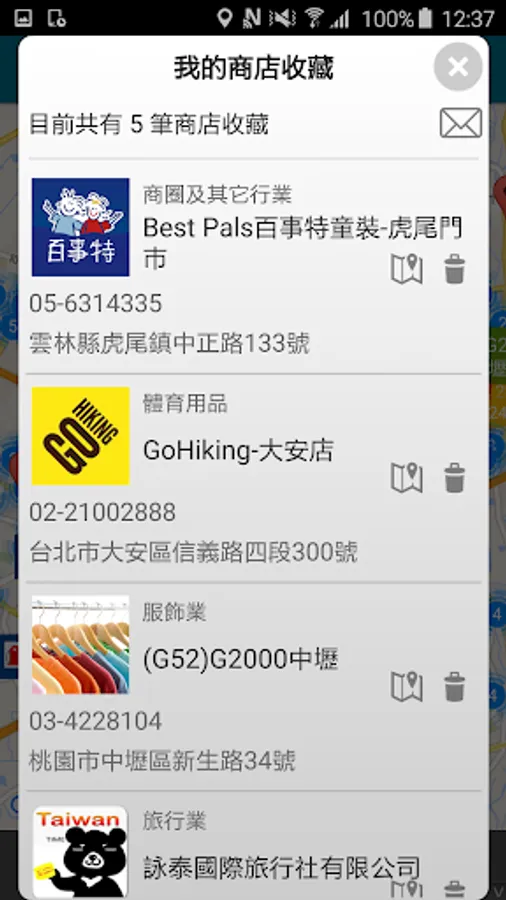 4. 提供店家收藏功能,以及在大地圖上直接標出,提升個人化的便利性,並輔以Email輸出機制方便備份及分享