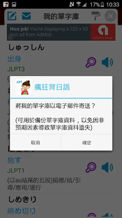 3. 提供我的單字庫功能,可自行建立單字以及透過EMAIL進行分享備份