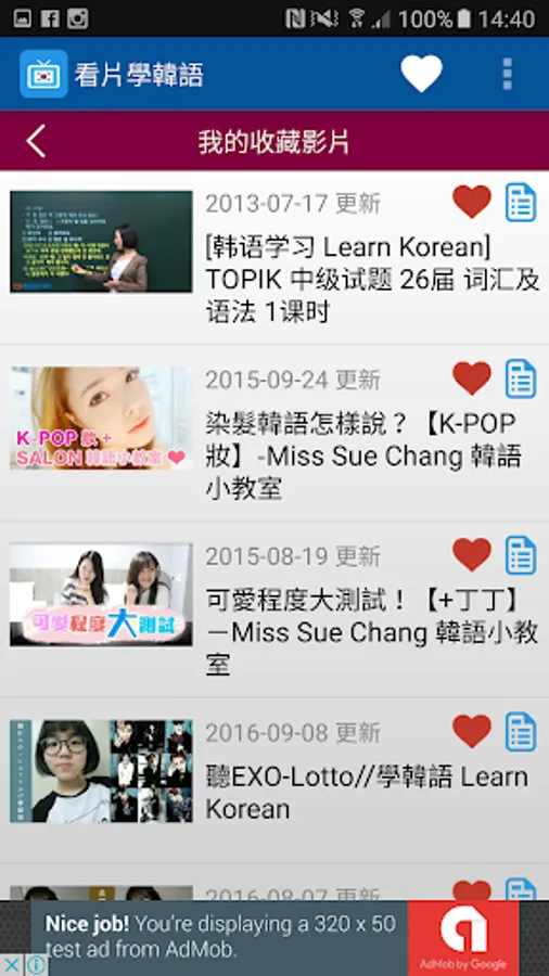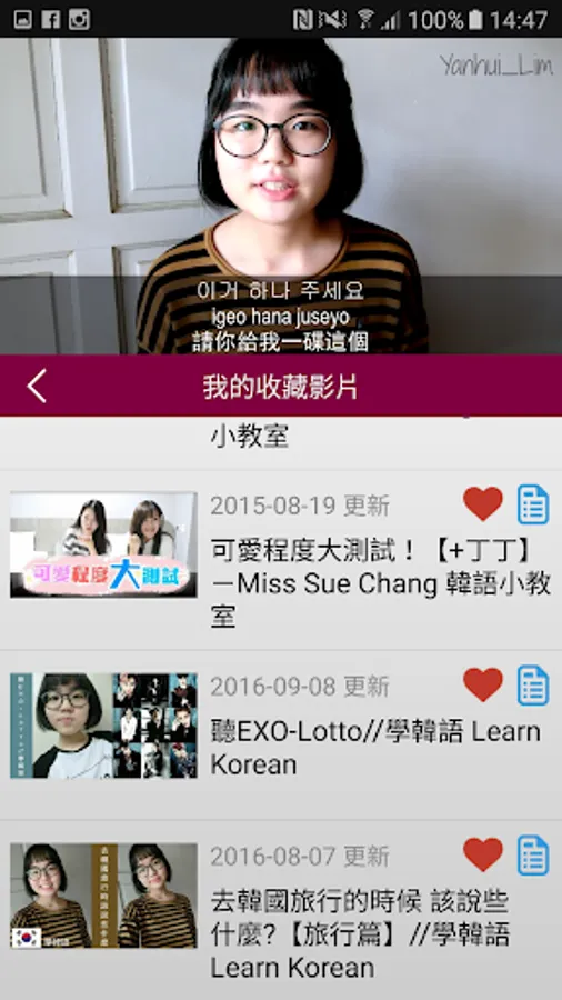 看片學韓語APP搜集整理YouTube上韓語達人、官方教學頻道、新聞網的影片直播及連結,讓用戶能方便觀賞學習YouTube上的韓語教學節目。