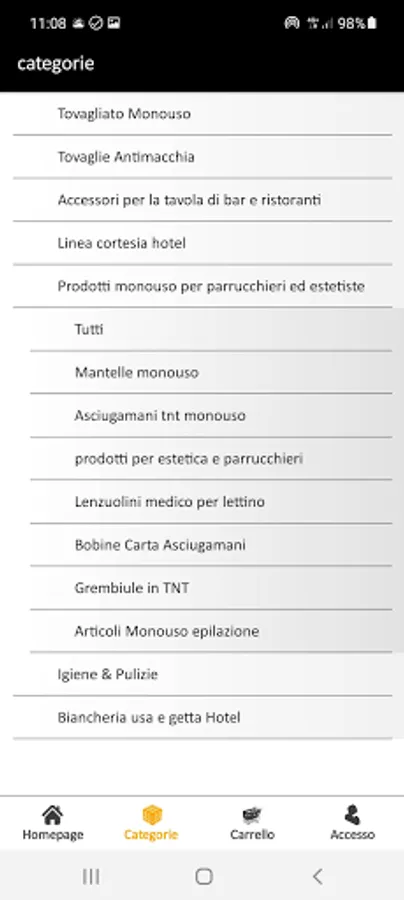 Tovaglie coprimacchia tovagliette tovaglioli e runner monouso in tnt o in airlaid per la ristorazione, detergenti e sanitizzanti haccp, linea cortesia hotel, accessori per la tavola come stoviglie bio bicchieri piatti in PS, biancheria usa e getta per hotel, come coprimaterassi e lenzuola usa e getta, asciugamani e teli mare o piscina.