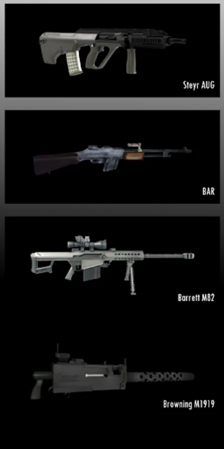 Choose your weapon and shoot! 74 weapon sounds, automatic, ancient, modern and even bombs! everything just a click away.