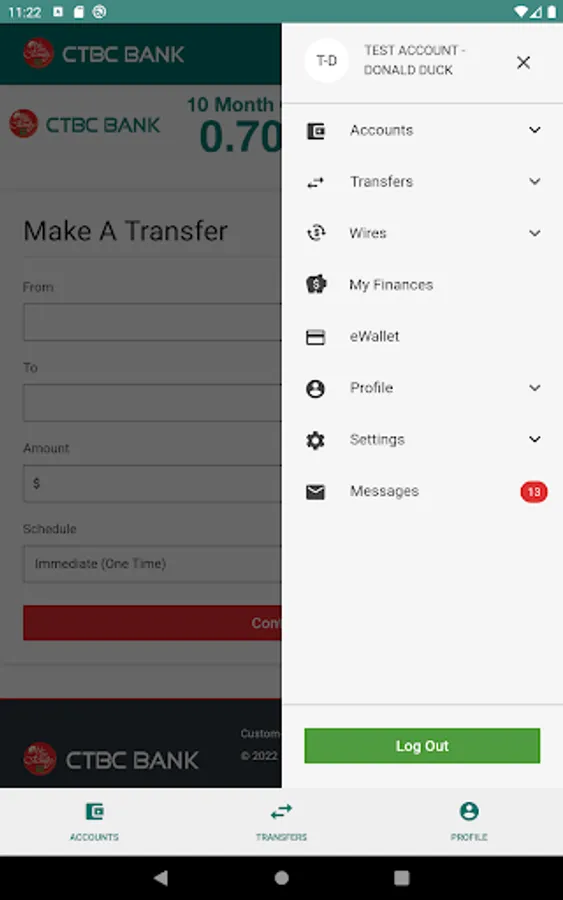 There is no charge from CTBC Bank, but message and data rate may apply. Such charges include those from your communications service provider. Delivery of alerts may be delayed for various reasons, including service outages affecting your phone, wireless or internet provider; technology failures; and system capacity limitations. Any time you review your balance, keep in mind it may not reflect all transactions including recent debit card transactions or checks you have written. CTBC Bank. Member FDIC.