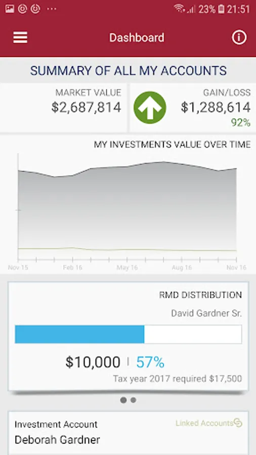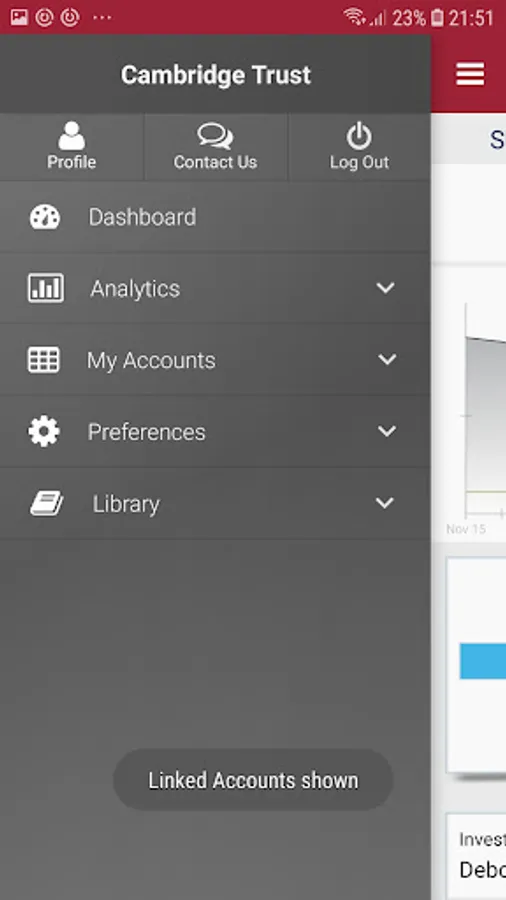 With the Cambridge Trust Total Wealth app, you have access to your Cambridge Trust investment account(s) information in real time. View balances, holdings, historical transactions and performance, and sort and filter by account, asset class, and time period when it’s most convenient for you.