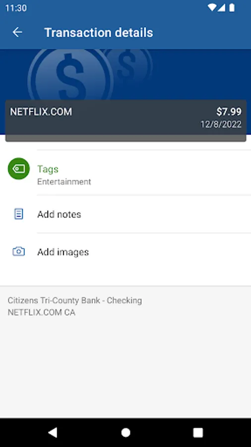 -Keep your transactions organized by allowing you to add tags, notes and photos of receipts and checks.