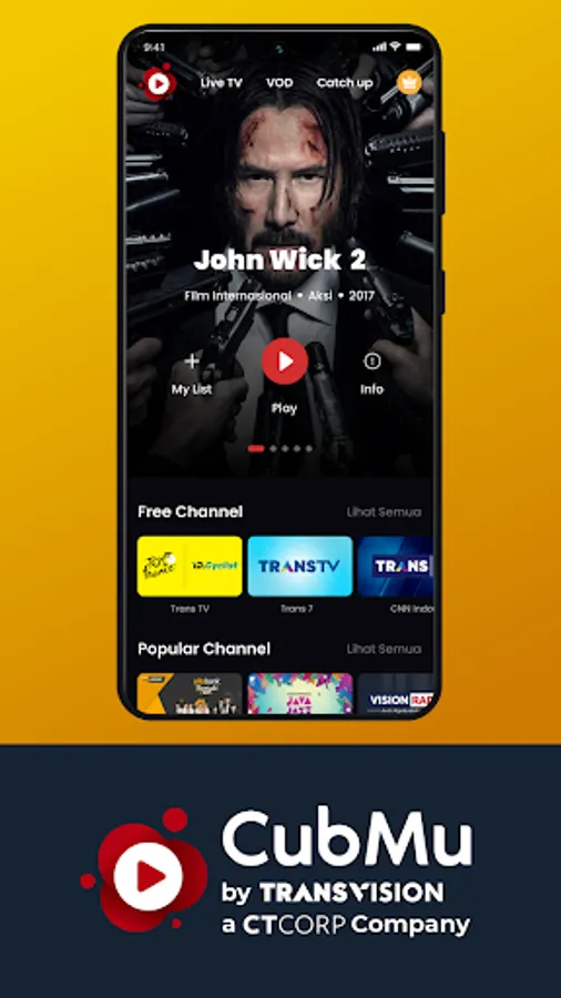 Transvision CUBMU is available free on Android devices. Enjoy the experience of watching streaming tv, watching more than 1000 cinema titles and tv series shows both locally and abroad to listening to interesting radio in just one application whenever and wherever.