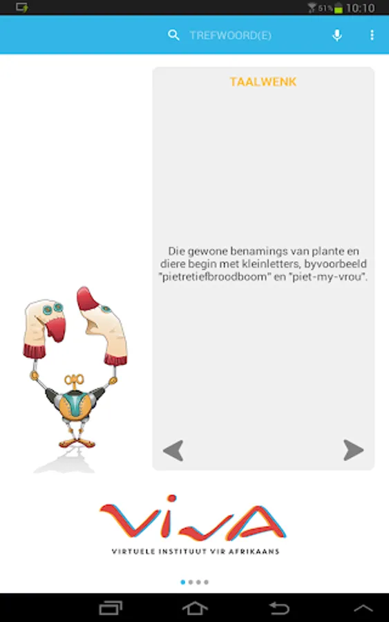 - VivA Vertaal (Bilingual wordlist of contemporary Afrikaans; based on enquiries addressed to VivA's language advisor)