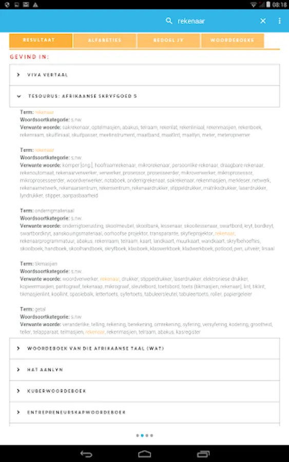 - Woordeboek van die Afrikaanse Taal (WAT) (More than 210,000 lemma from the only comprehensive explanatory dictionary of Afrikaans)