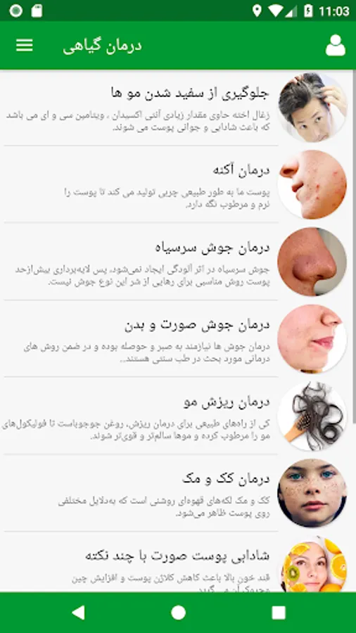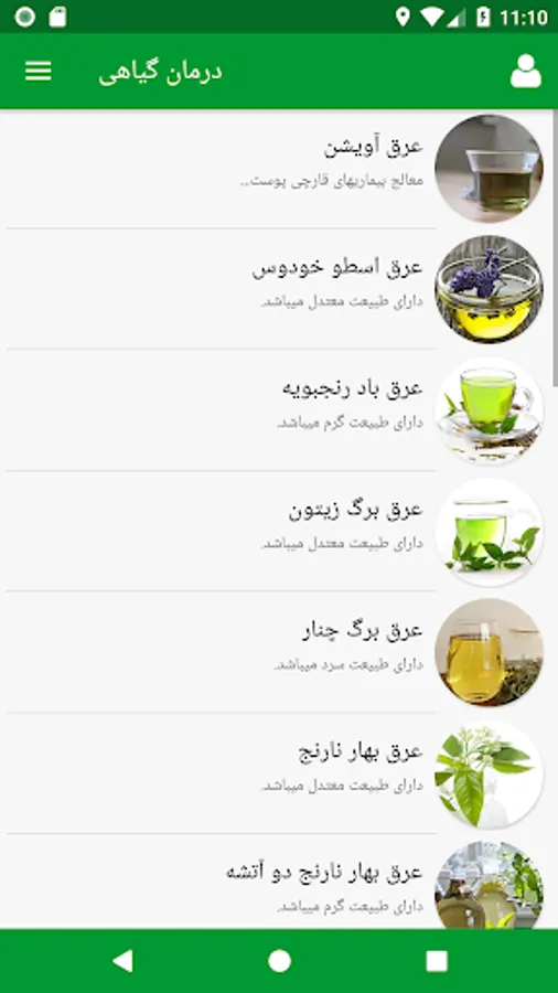 نرم افزار درمان گیاهی، دربرگیرنده ی گیاهان دارویی و خواص آنها با عکس گیاهان میباشد. علاوه بر این فهرستی از بیماری های متعارف نیز آورده شده و روش درمان هر کدام آنها با گیاهان دارویی شرح داده شده است. بیشتر دارو های گیاهی که در این برنامه به آنها اشاره شده است از عطاری ها قابل تهیه میباشد، برخی از آنها هم همیشه در دسترس ما هستند. تهیه محتوای این برنامه از کتاب و منابع اصلی طب سنتی و سایت های معتبر صورت گرفته است.