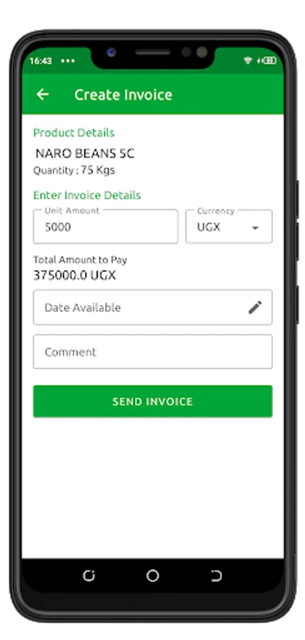 • Easily generate an invoice for the requested quote and push it back to the farmer at the tap of a button