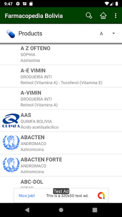 Catalog of medicines sold in Bolivia, searchable by trade name, drug, lab, pathology and therapeutic classification.