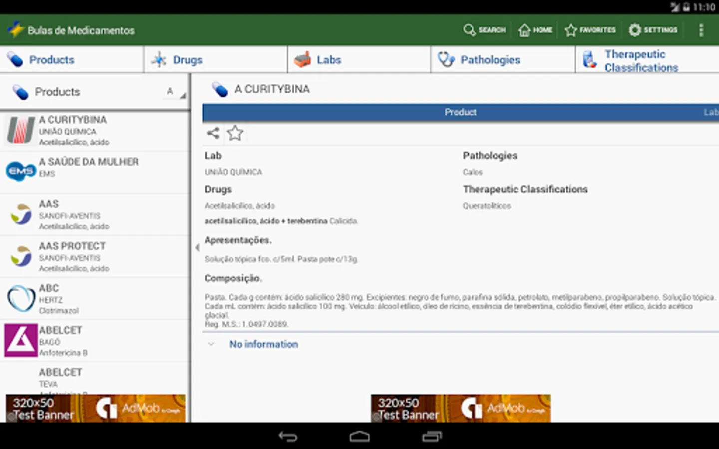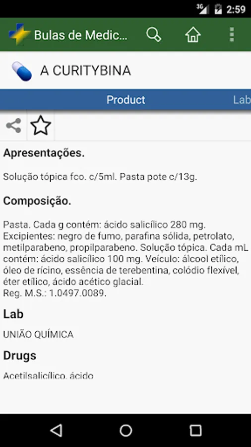 Application for reference for physicians, pharmacists and health professionals in general, that lets you check the details of medicines with the following information