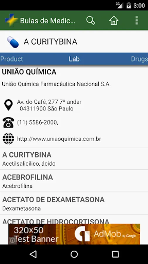 Catalog of medicines sold in Brazil, searchable by trade name, drug, lab, pathology and therapeutic classification.