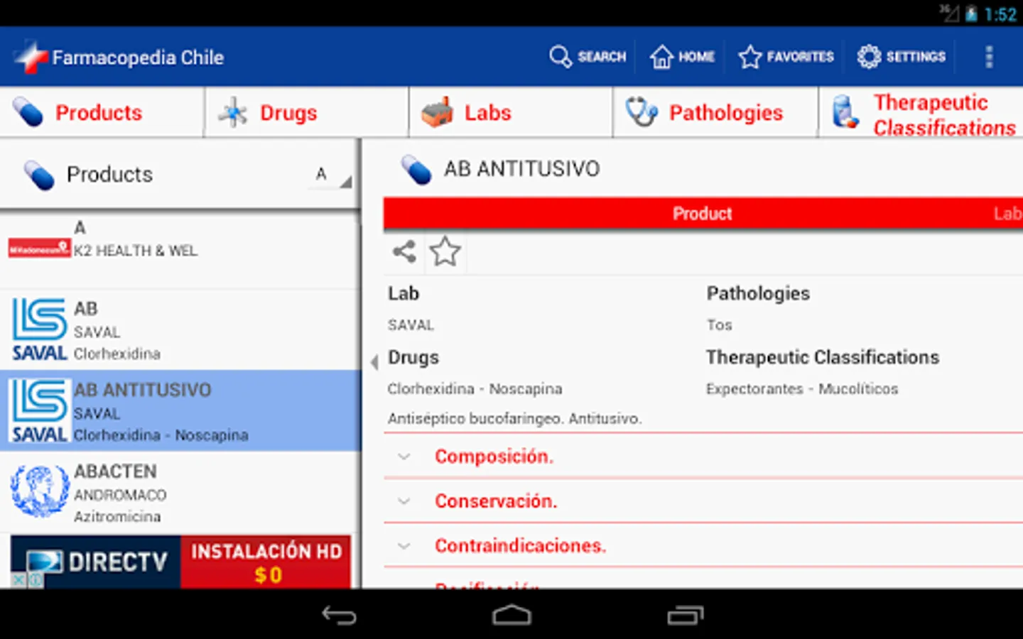 Application for reference for physicians, pharmacists and health professionals in general, that lets you check the details of medicines with the following information