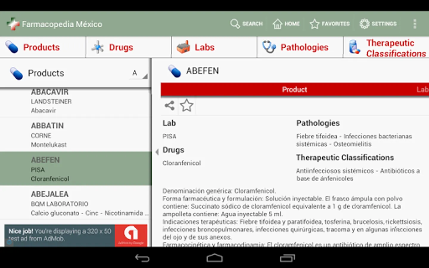 Application for reference for physicians, pharmacists and health professionals in general, that lets you check the details of medicines with the following information