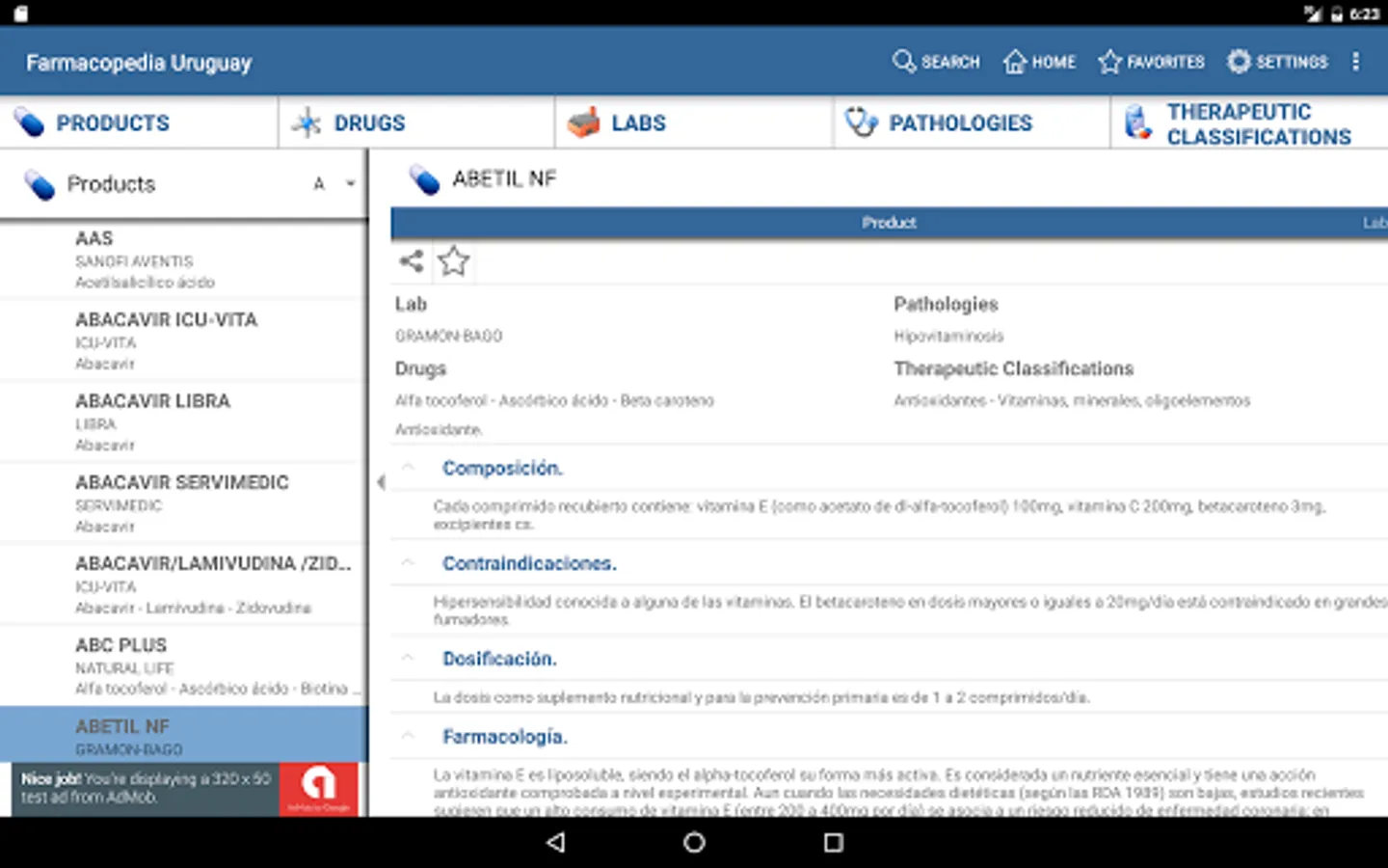 Application for reference for physicians, pharmacists and health professionals in general, that lets you check the details of medicines with the following information