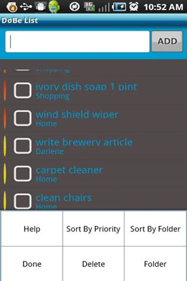 - DoBe List, main screen.