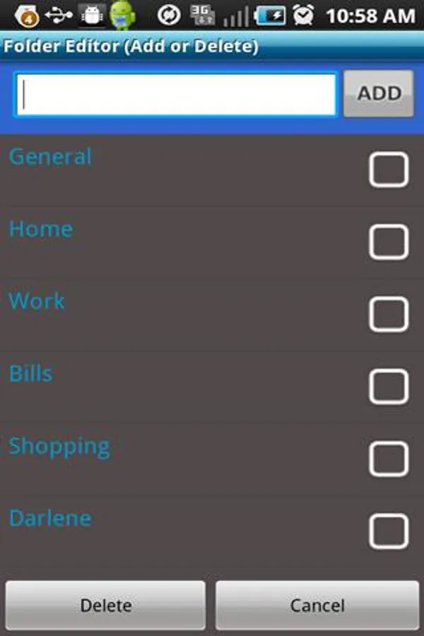 you add using the folder screen.