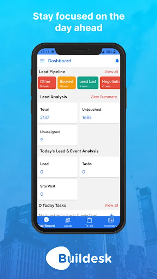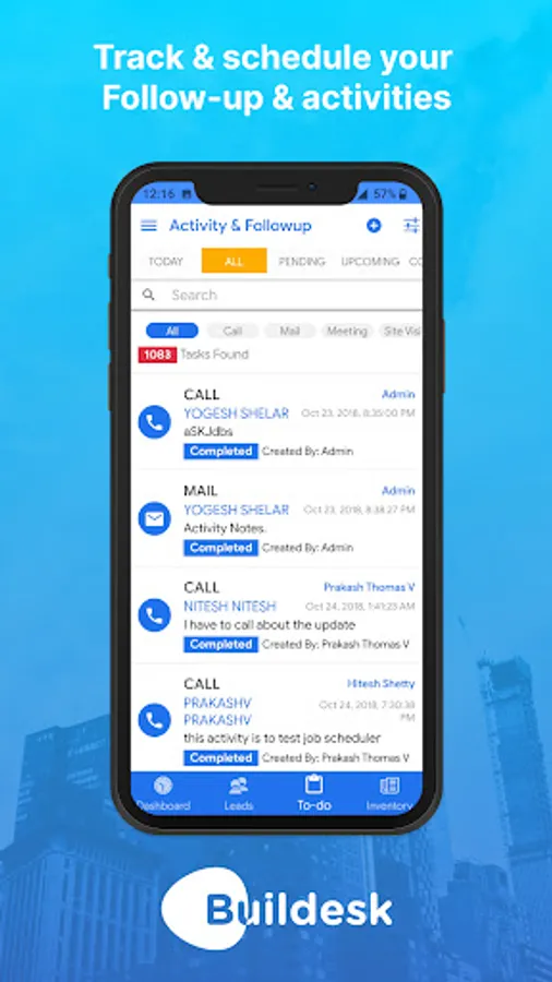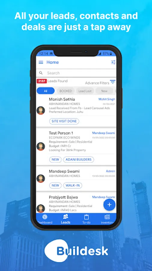 Buildesk CRM is a mobile and web-based application for the broker and real estate consultant to manage their lead, customer, inventory, and sales team on the go.