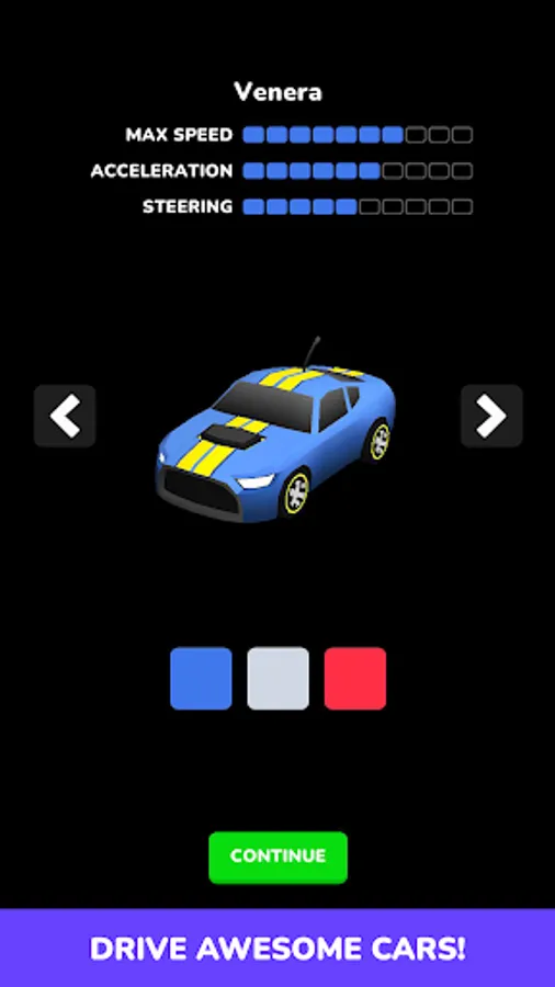 There are multiple cars in the game, each one of them with different acceleration, max speed and steering stats. You should carefully pick a car that suits the track better.