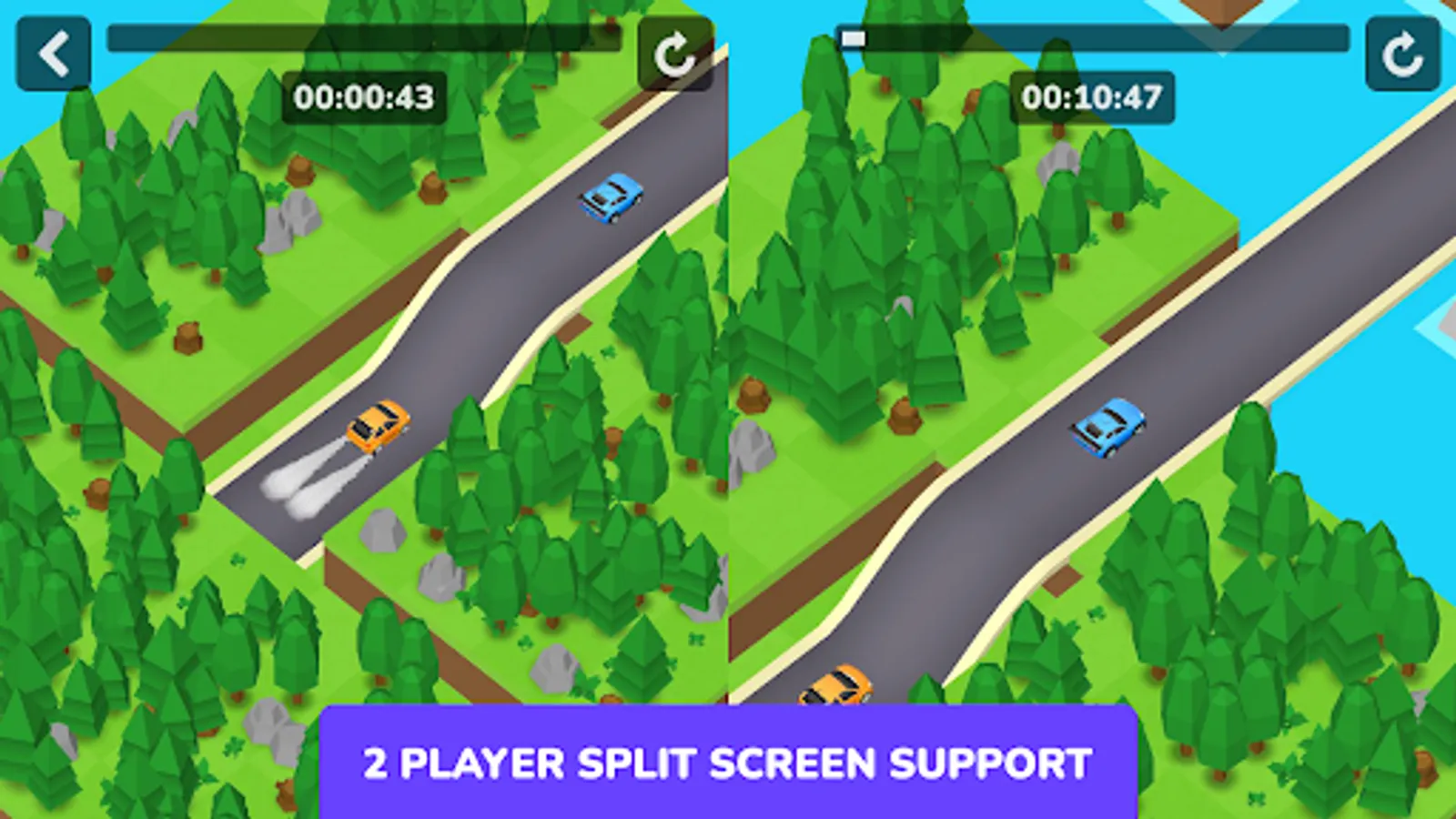 Island Racer is a cool racing game that also allows you to build tracks. You can race on these tracks alone or with your friends in a split-screen mode. The cars have very simple controls, just press a single button to accelerate, and the car will steer and drift automatically. Try to avoid falling from the track.