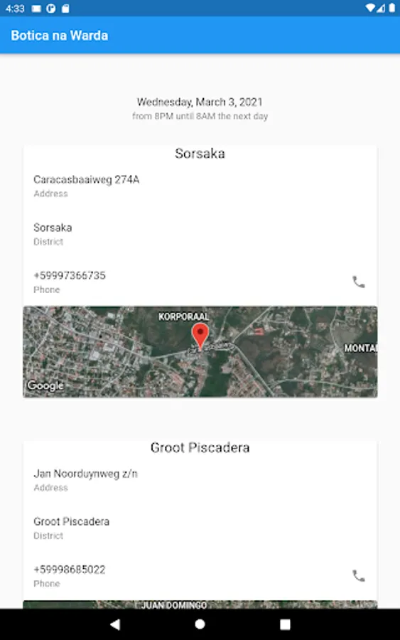 With the BoticaNaWarda App it's easy to find out which pharmacies on Curaçao are on nightshift for emergencies.
