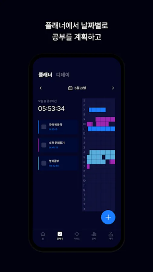 ④ ‘Statistics’ that allows you to look back on your daily study routine