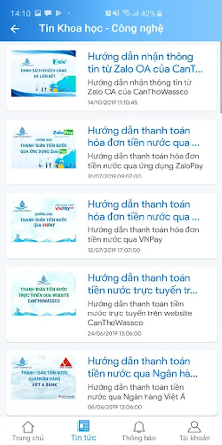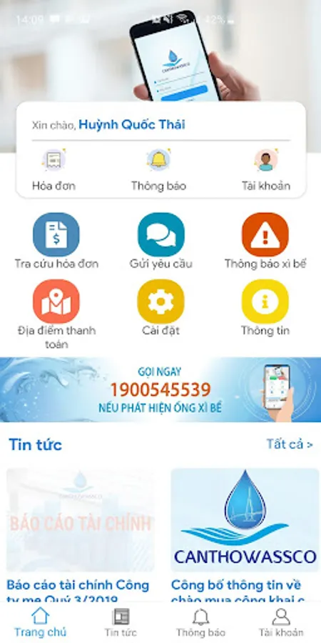 Nhận thông báo từ Công ty về tình hình sử dụng nước.